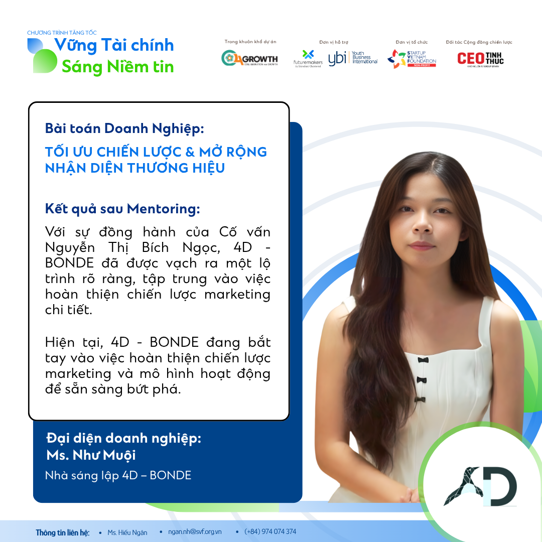 - Có dự án lại “yếu về kỹ năng pitching” và được Cố vấn góp ý chi tiết về pitch deck để hoàn thiện bài pitching chuyên nghiệp, sẵn sàng cho vòng gọi vốn.
