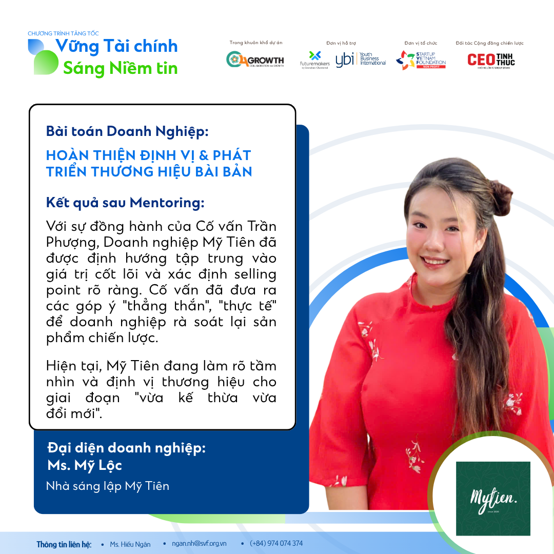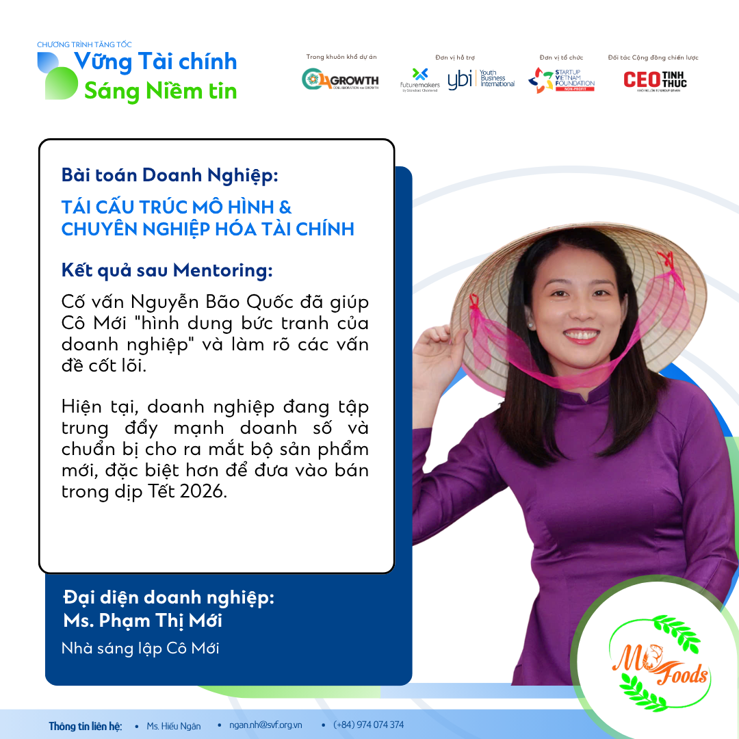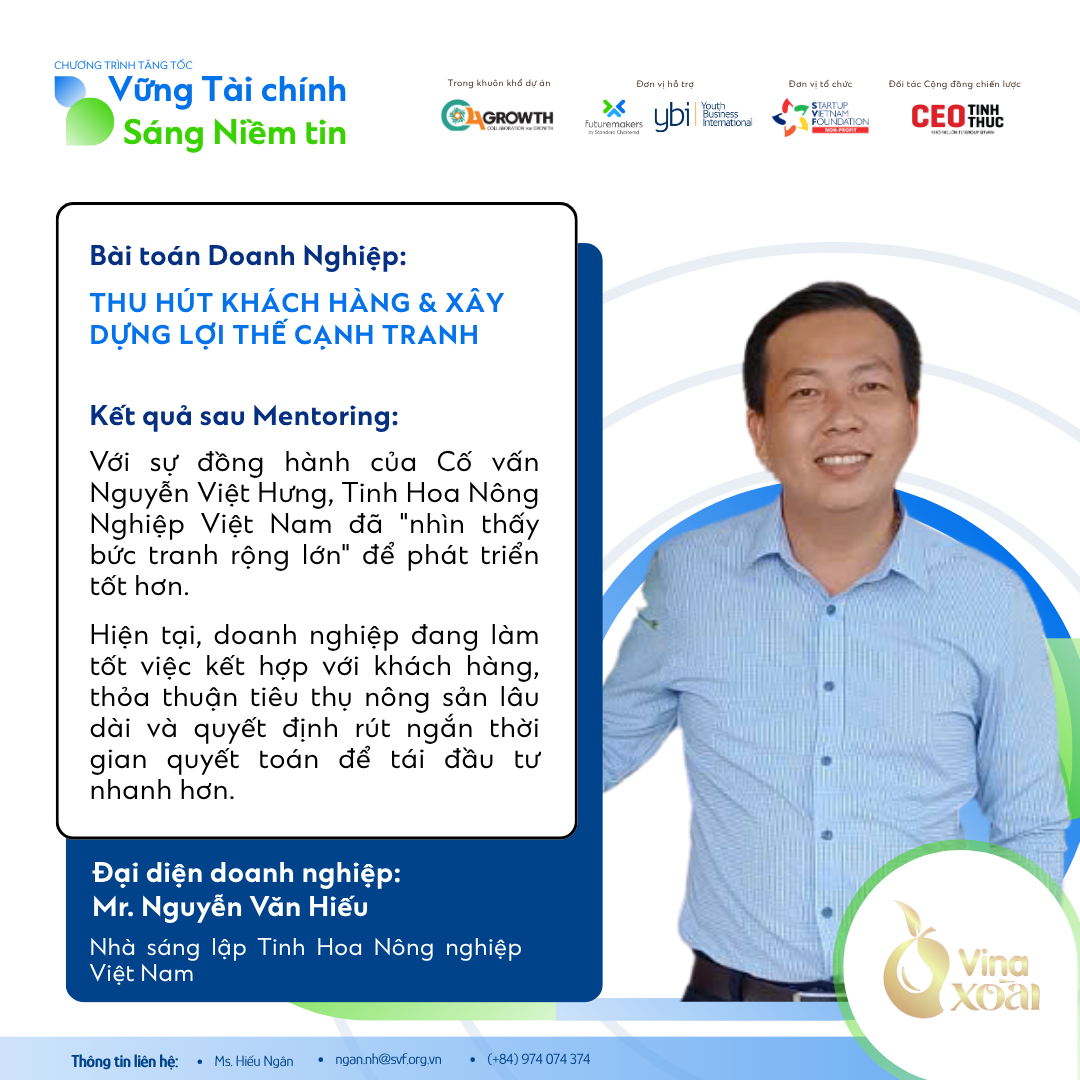 Trong khuôn khổ chương trình “Vững Tài chính – Sáng Niềm tin”, chuỗi hoạt động Mentoring 1:1 đã mang đến cho các Doanh nghiệp cơ hội làm việc trực tiếp cùng các Chuyên gia, Cố vấn “Tiên phong”. Mentoring 1:1 không chỉ là những buổi giảng lý thuyết và đưa ra lời khuyên, mà còn mang đến một mối quan hệ cá nhân hóa, sâu sắc, nơi các Doanh nghiệp: