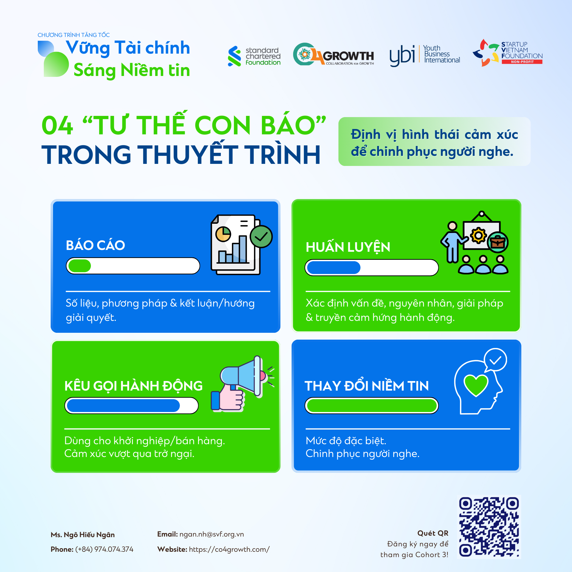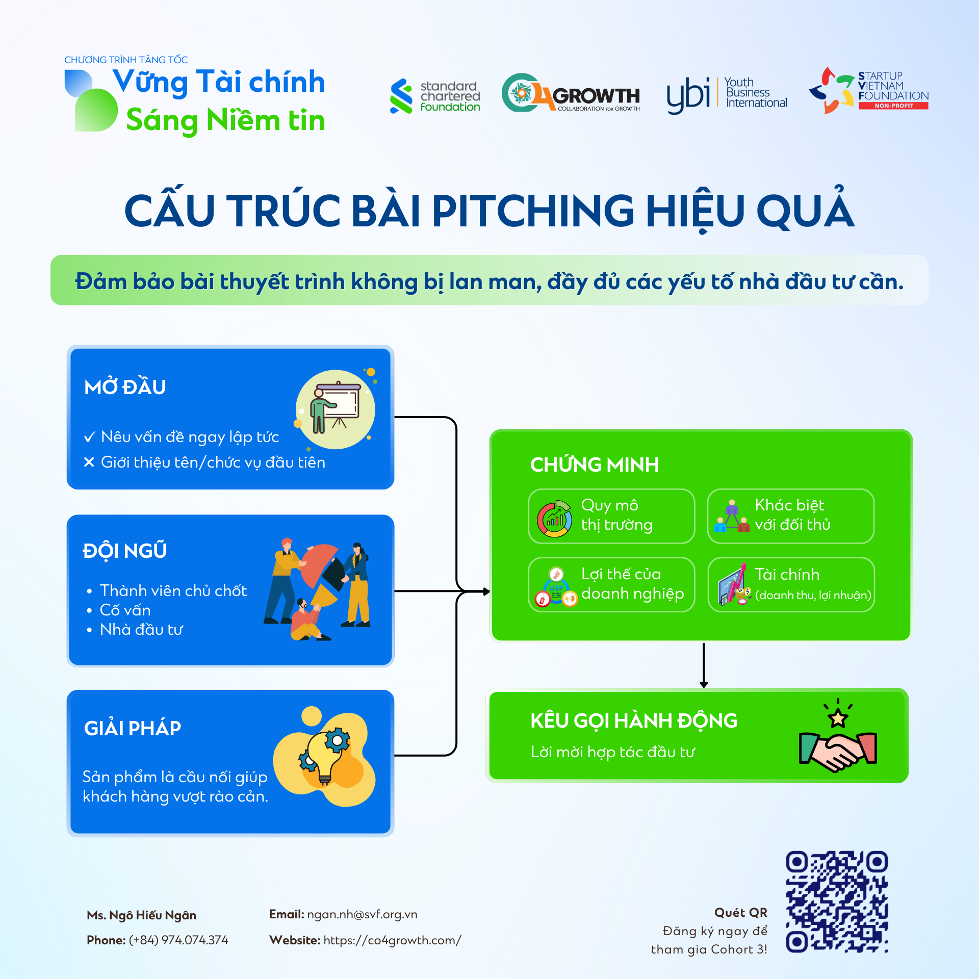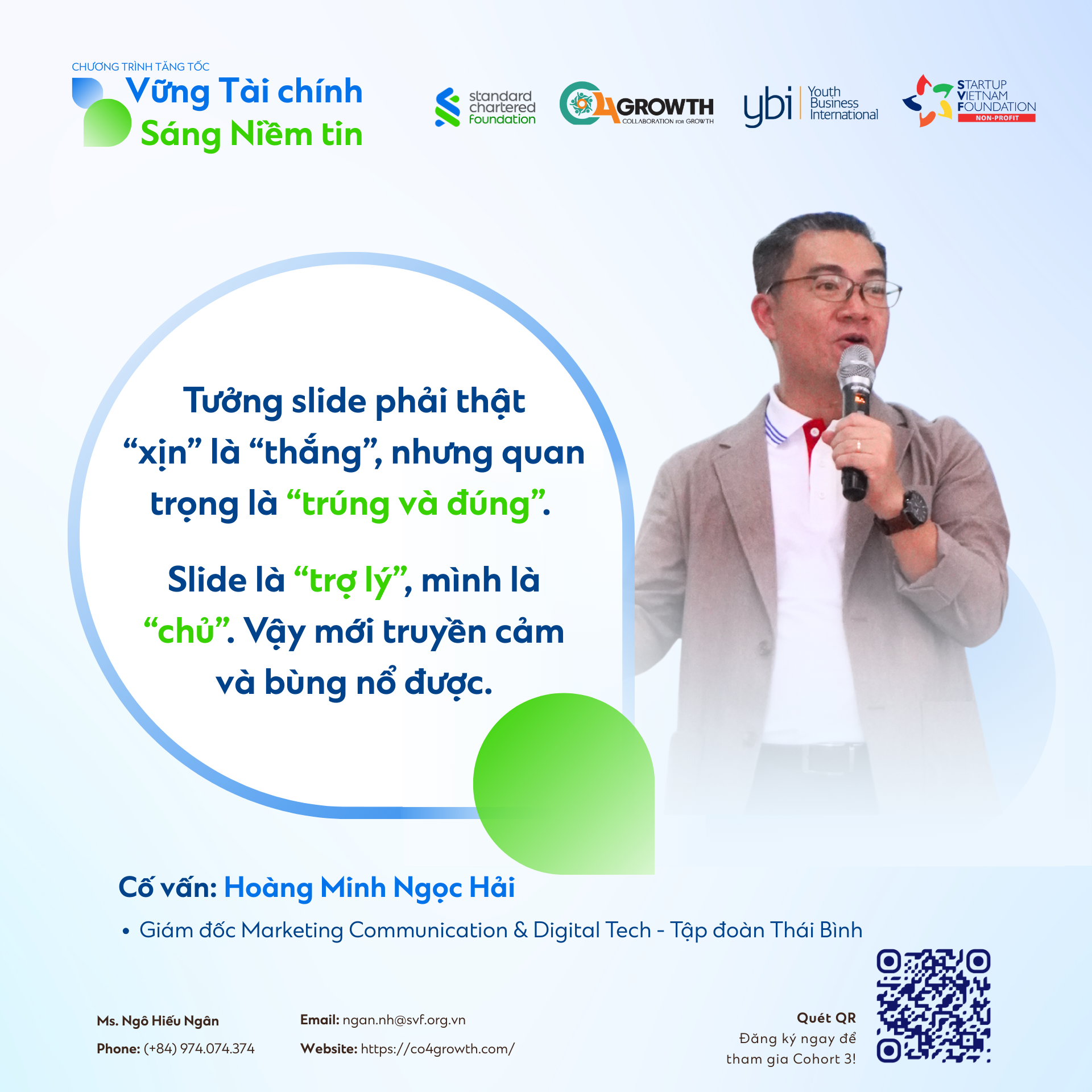 Nếu bạn cũng đang tìm kiếm một lộ trình bài bản để “nâng cấp” nội lực, hoàn thiện kỹ năng thuyết trình và tự tin định vị doanh nghiệp trước nhà đầu tư, đừng bỏ lỡ cơ hội trở thành một phần của “Vững Tài chính – Sáng Niềm tin” Cohort 3.